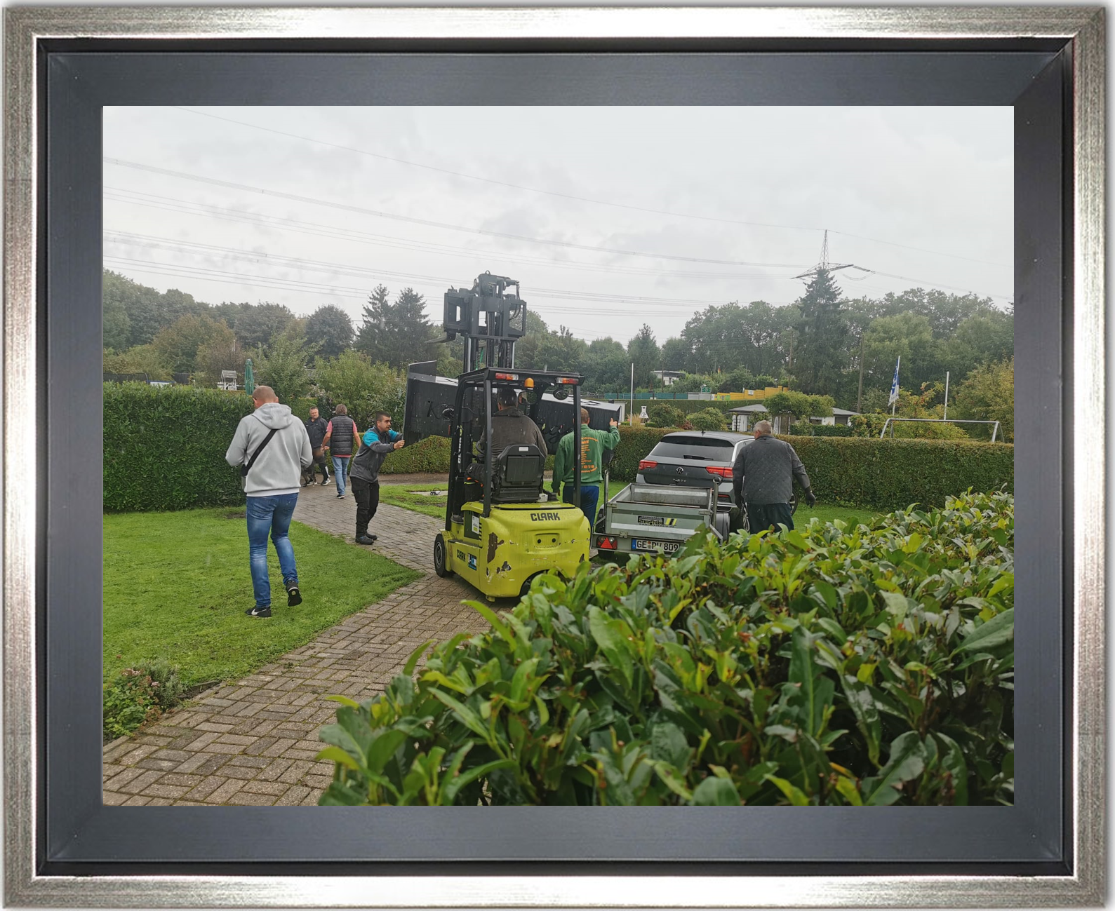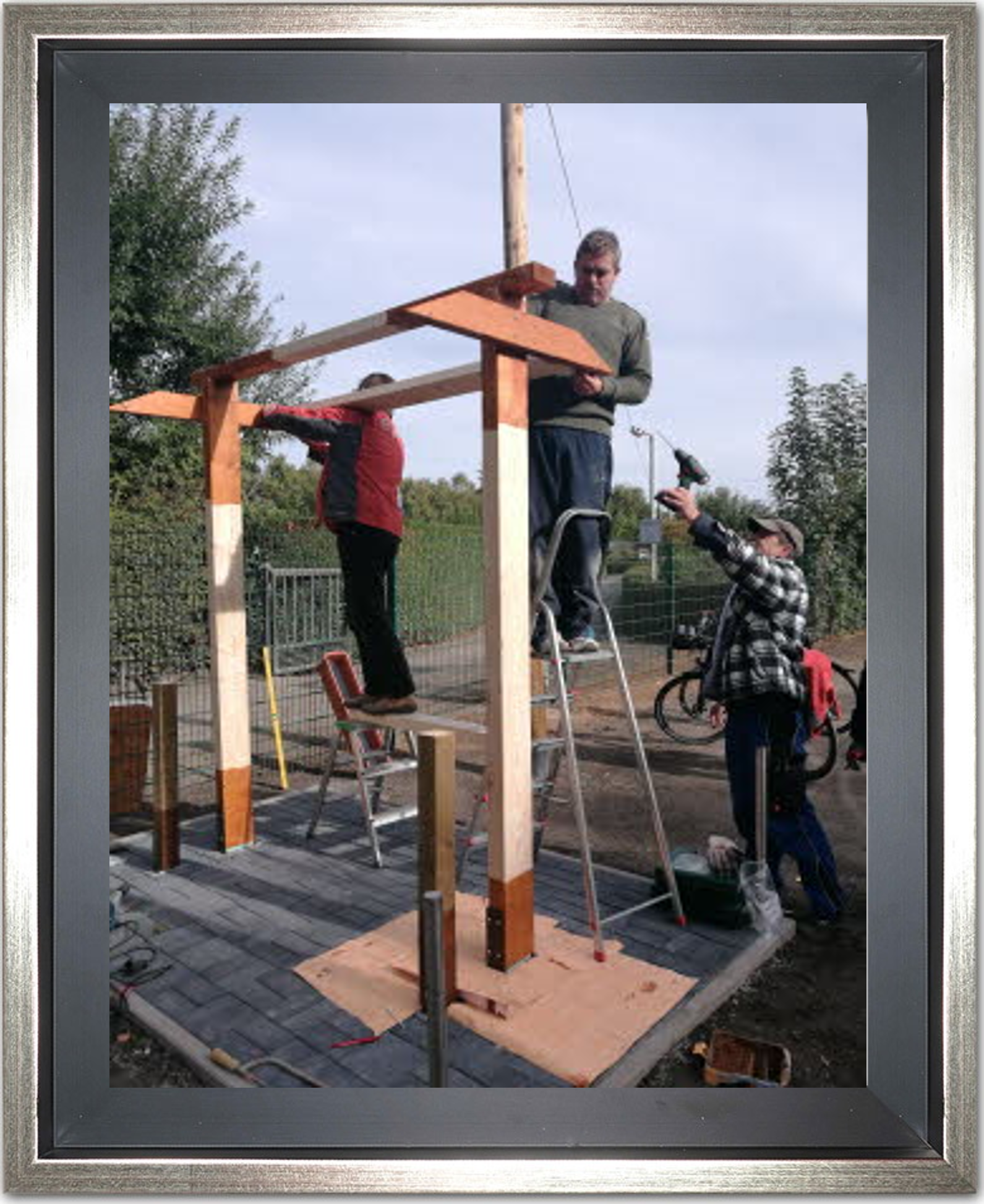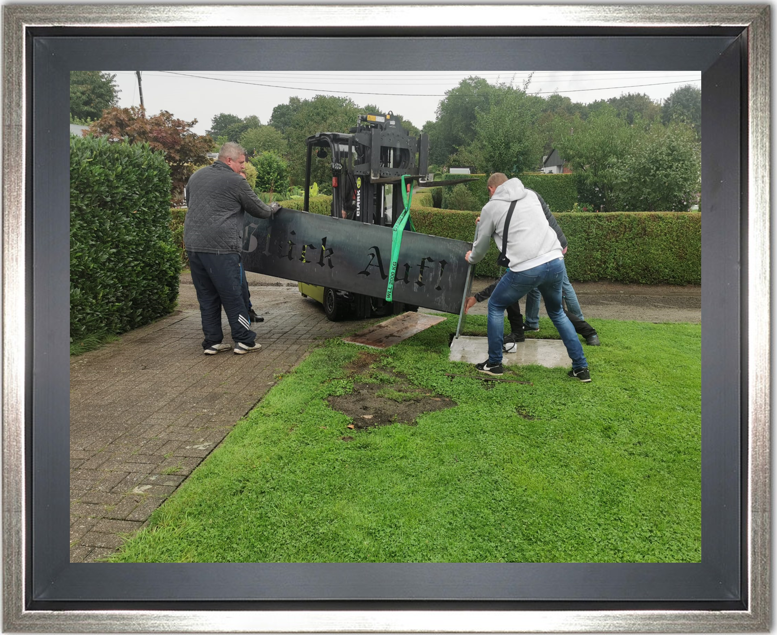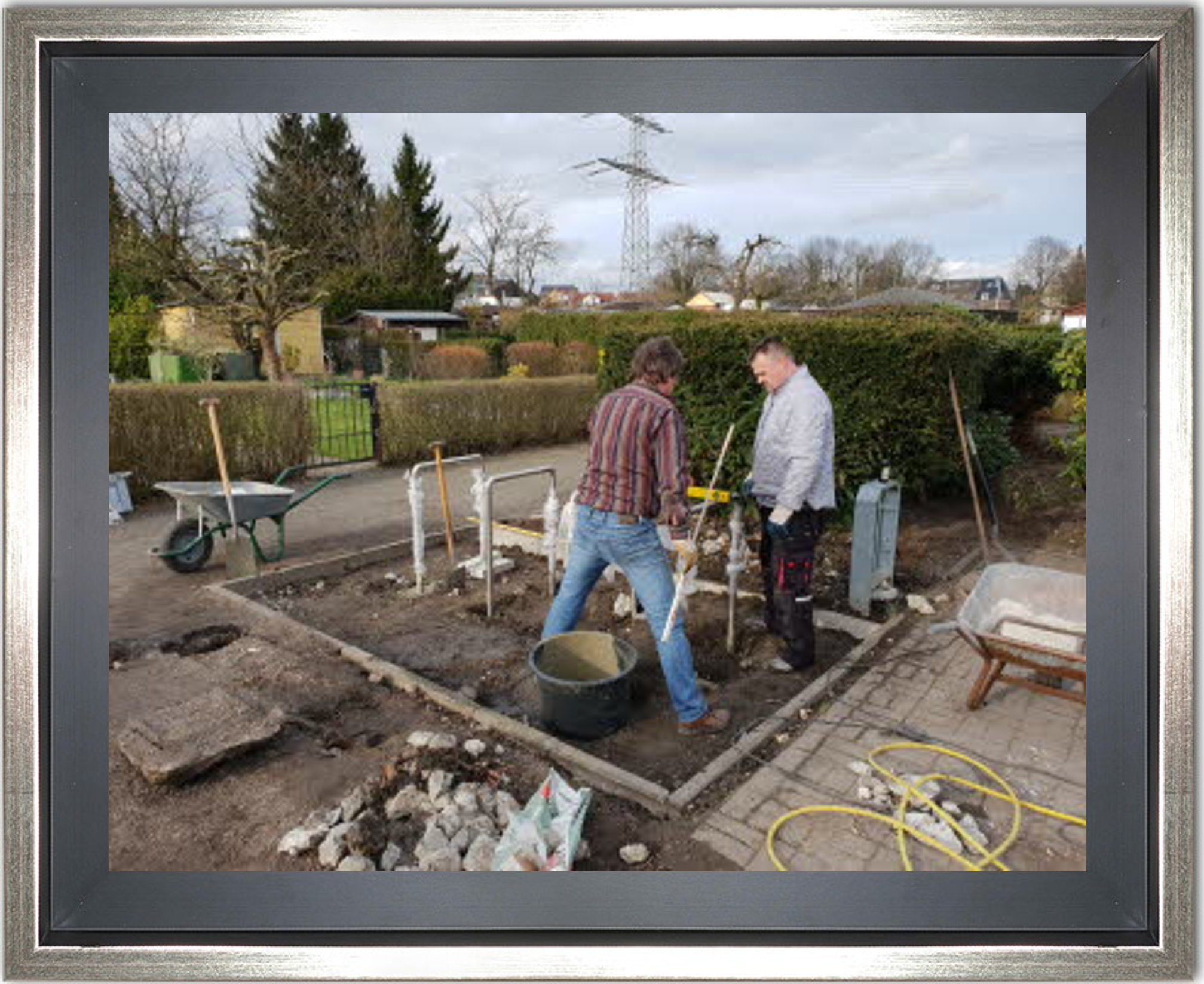 Die neue Deko - Feuerschale wurde abgeholt und aufgebaut.