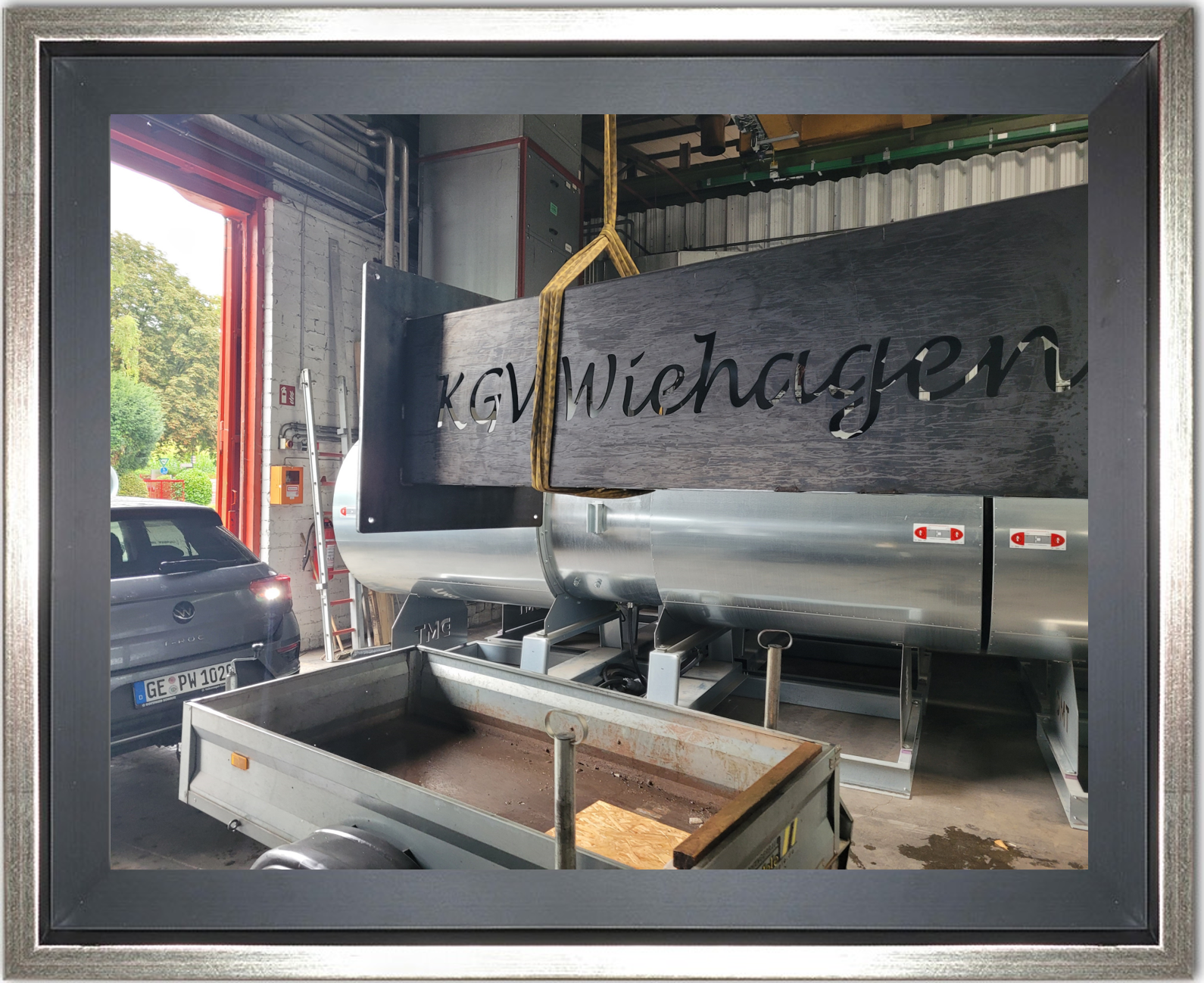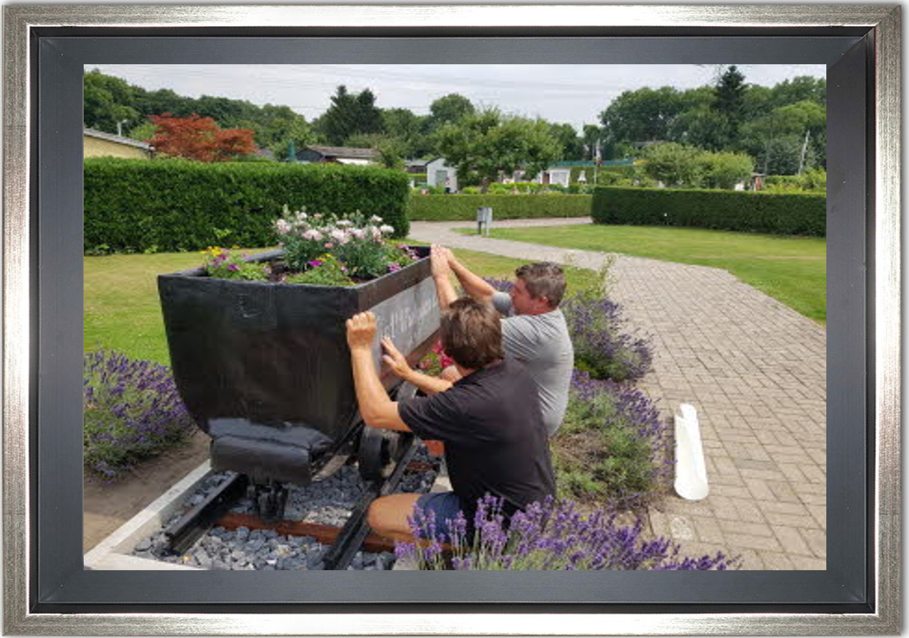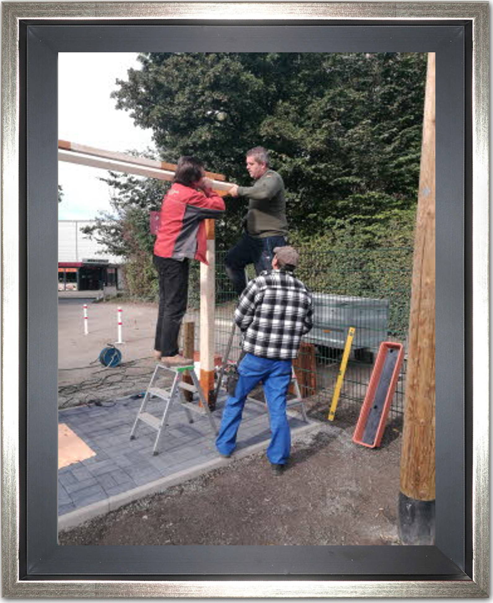 Die neue Deko - Feuerschale wurde abgeholt und aufgebaut.