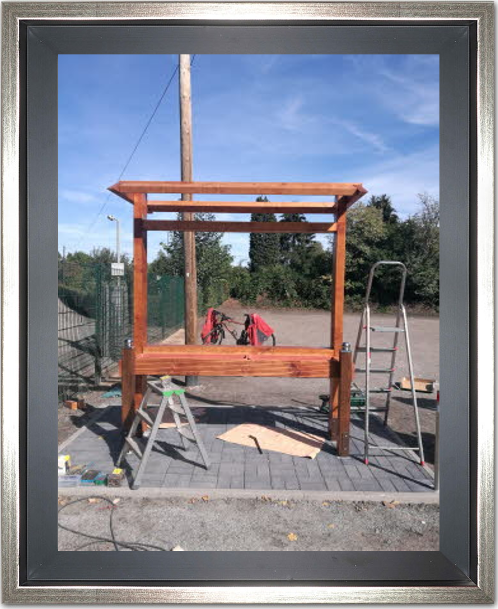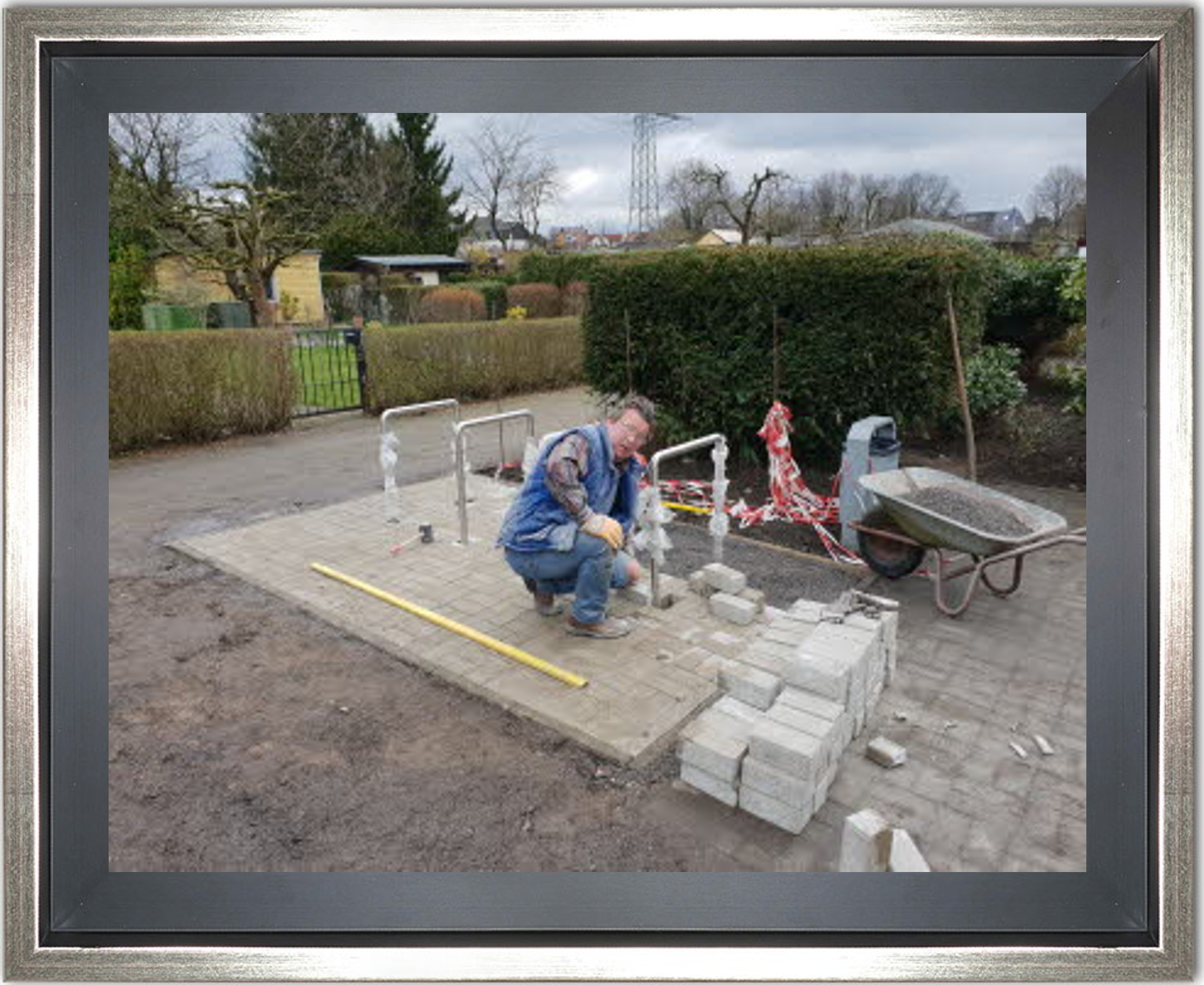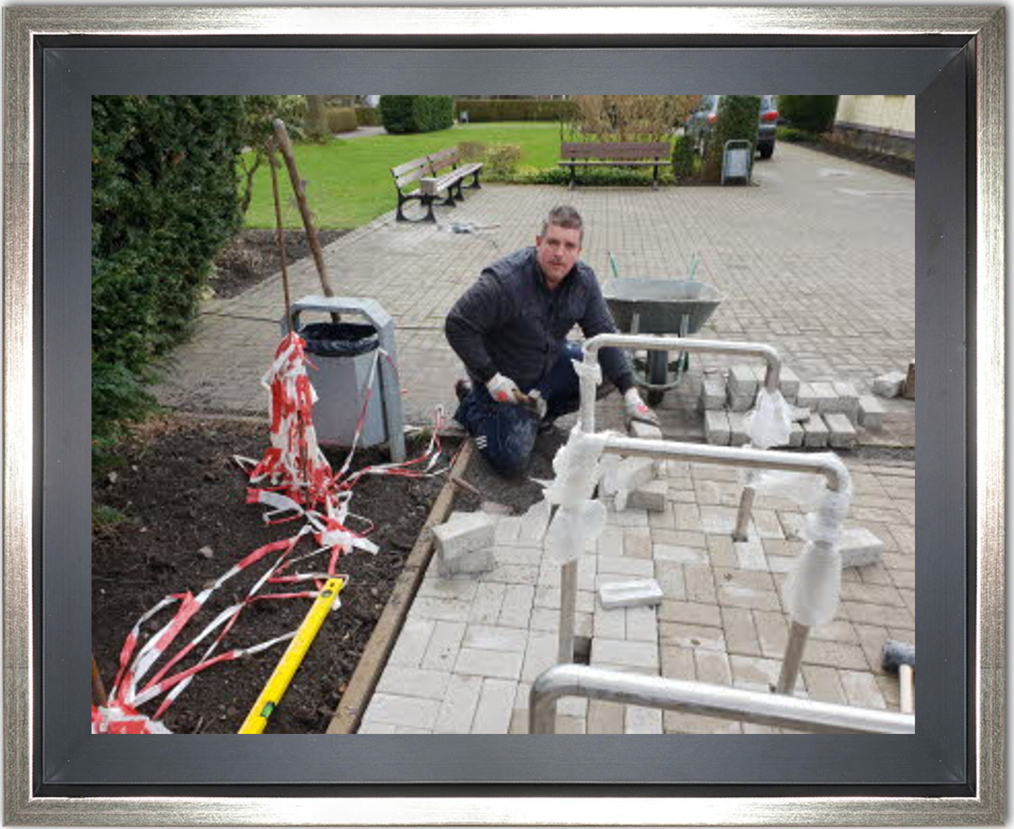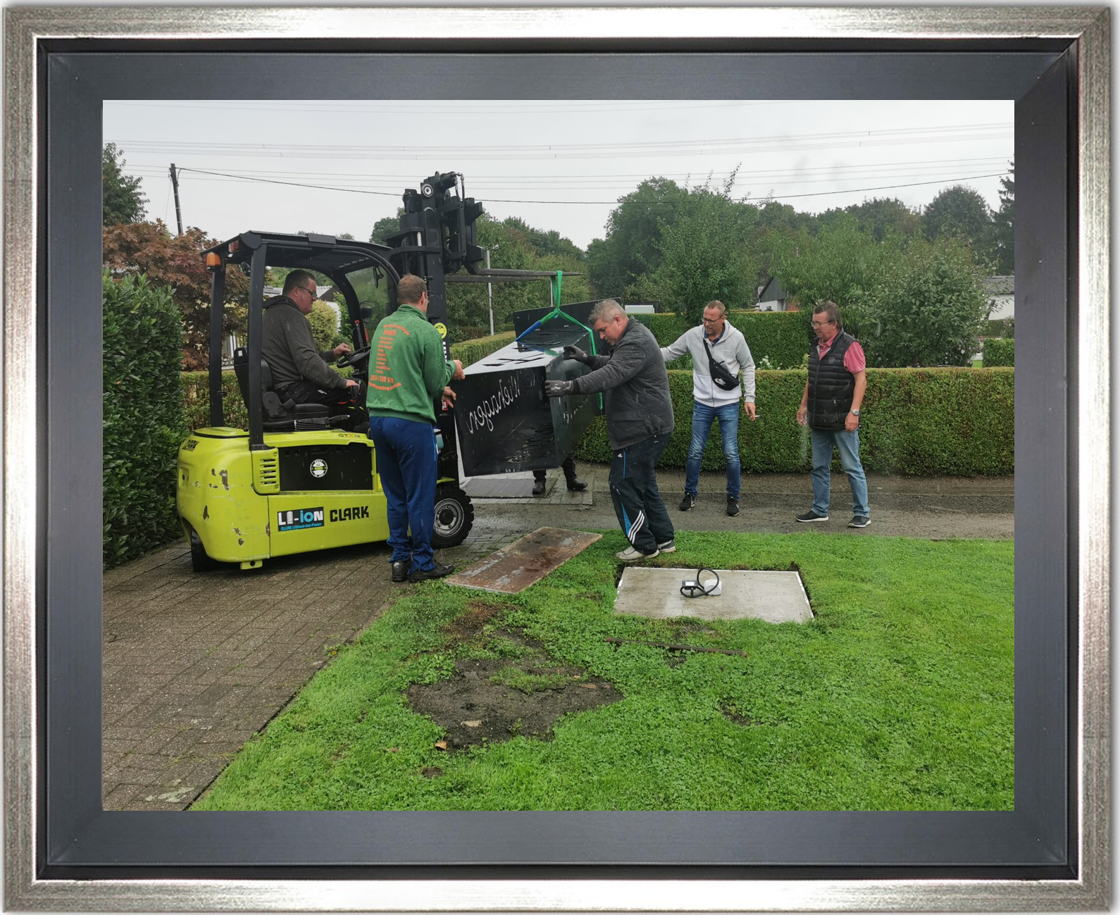 Die neue Deko - Feuerschale wurde abgeholt und aufgebaut.