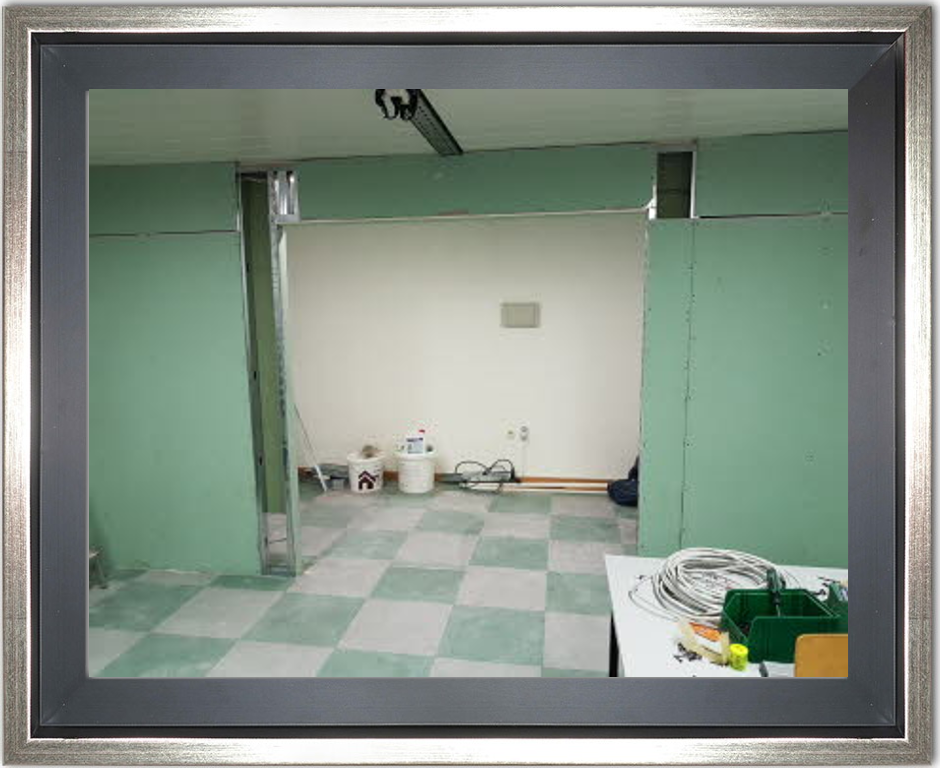 Der alte Vorhang wurde durch eine neue Wand mit Falttür ersetzt.